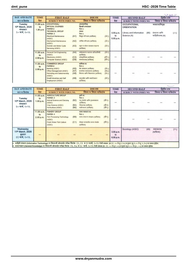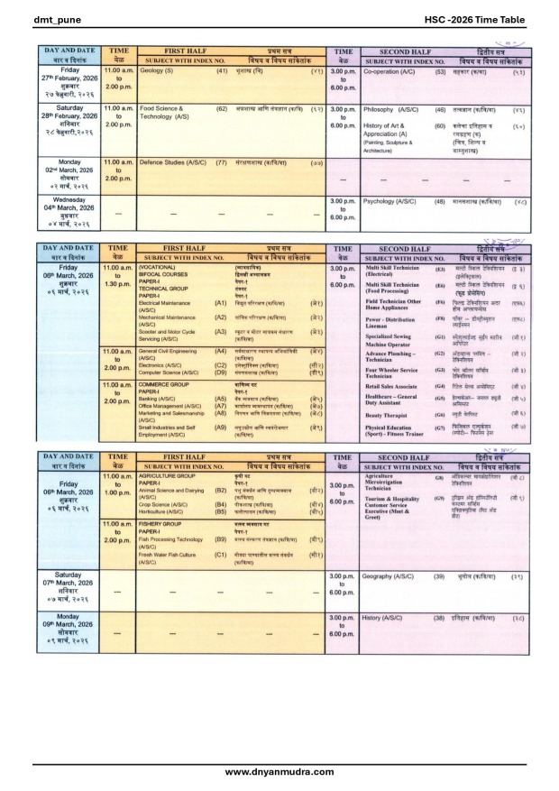 The Maharashtra State Board of Secondary & Higher Secondary Education (MSBSHSE) will conduct the HSC Board Exams 2026 for Science, Commerce, and Arts streams in February–March 2026. Students appearing for the exams can check the complete schedule, important instructions, and preparation tips below. This article provides the latest HSC 2026 Time Table, subject-wise exam dates, and useful guidelines to help students prepare effectively.